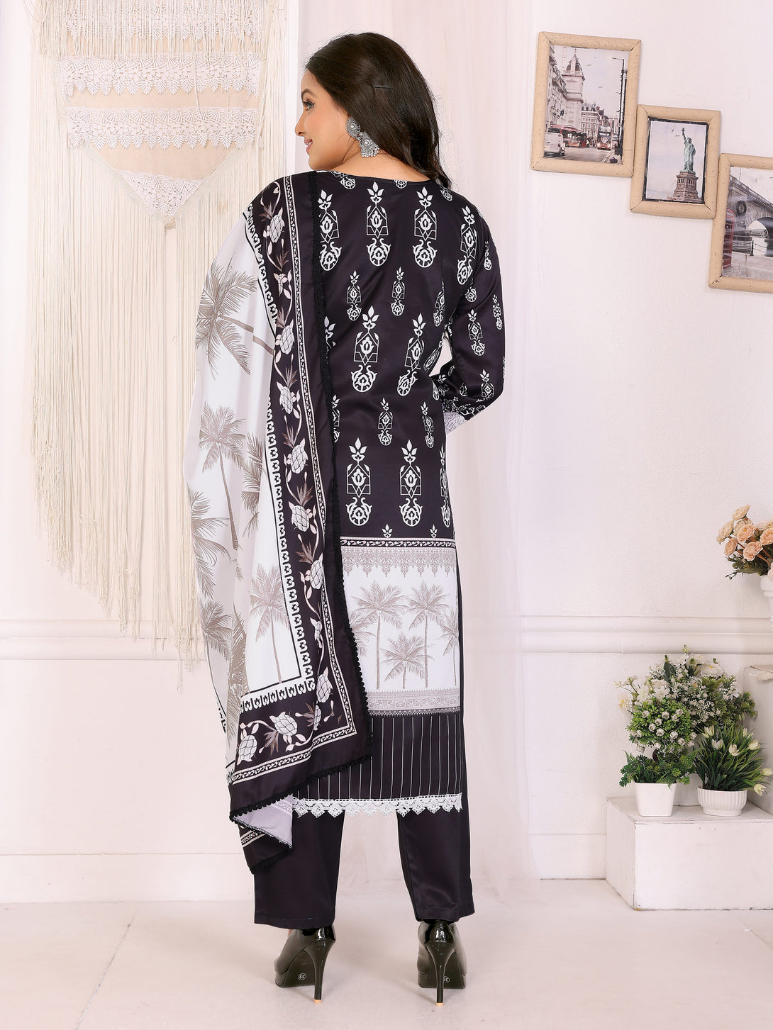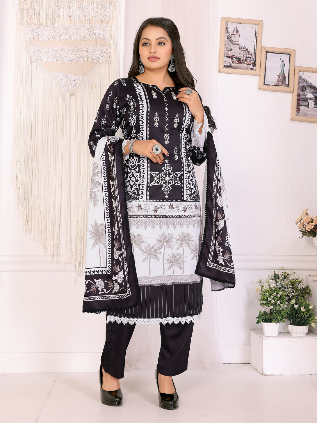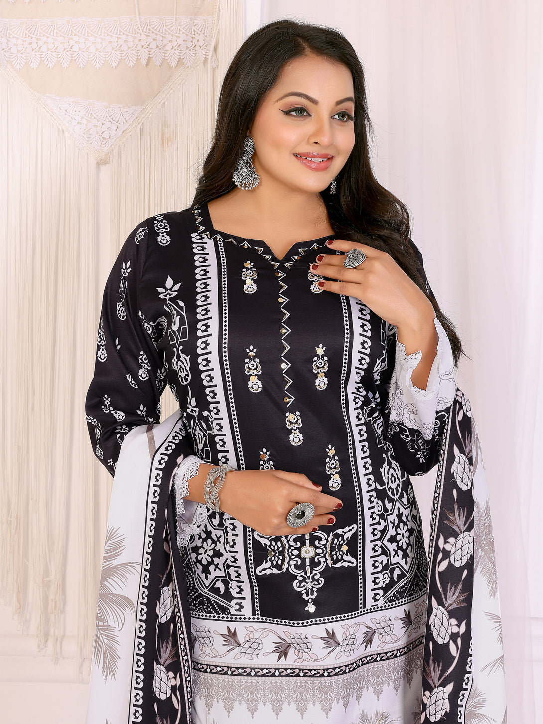 Women’s Premium Quality Black & White Embroidery & Printed Kurti Set with Dupatta – Vastrika