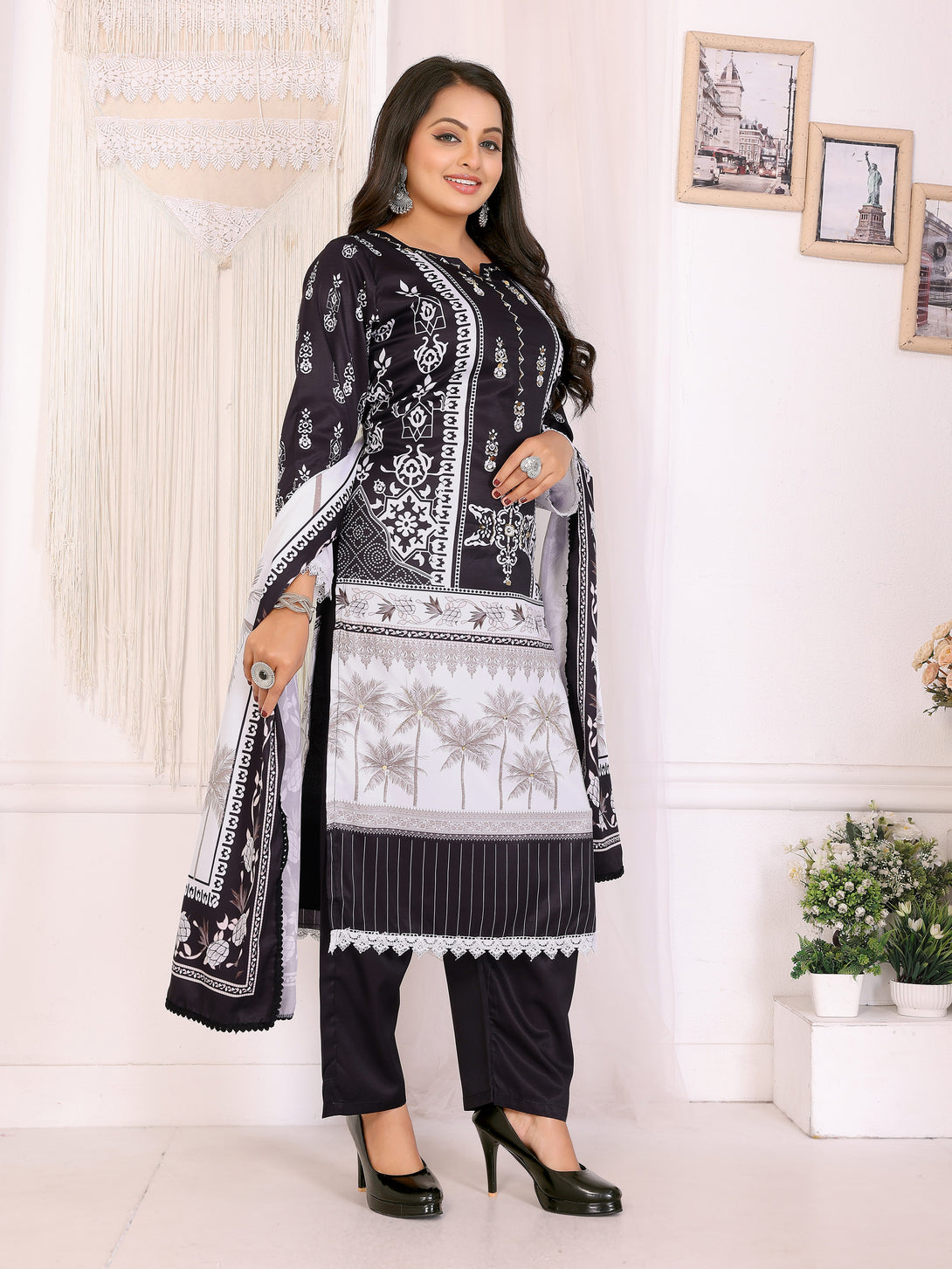 ✨ Elevate your ethnic style with this women’s black & white printed kurti set with dupatta from Vastrika. Crafted in premium blend silk fabric, this outfit offers a luxurious feel with a lightweight, comfortable drape. The intricate prints and elegant design make it a perfect choice for festive occasions, family gatherings, or evening events.