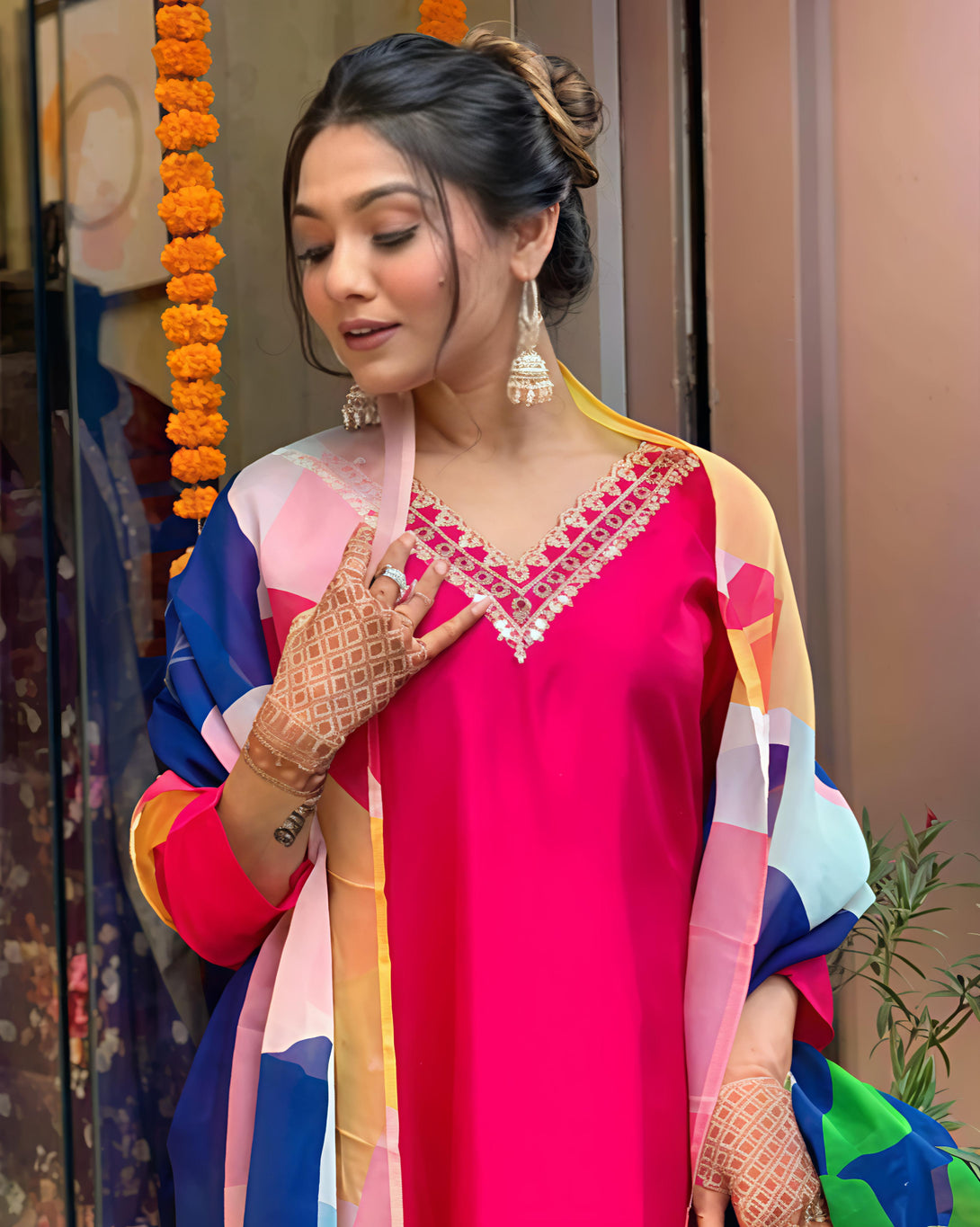 - Kurta Set Fabric: Viscose Reyon|| Kurta Set Color :- Pink